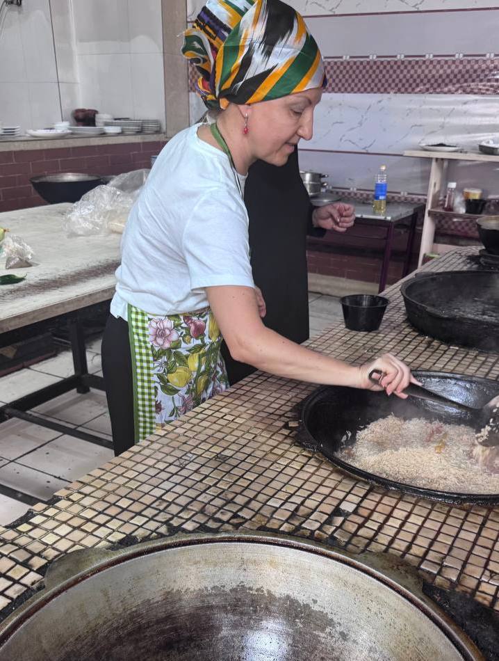 В рамках знакомства с традициями и культурой Узбекистана, доцент кафедры Международного права Валентина Владимировна Терешкова прошла мастер-класс по приготовлению плова и самостоятельно приготовила настоящий узбекский плов.